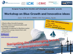 CALL FOR PRESENTATIONSDo you have any entrepeneurial idea? or a research project idea you want to present on Blue Growth? …it does not need to have a market study, just have the courage to present it!! Send your Power Point presentation in: 5min and 5 slides Call for presentations deadline: 17th May 2013 Email: eyumast(at)gmail.com