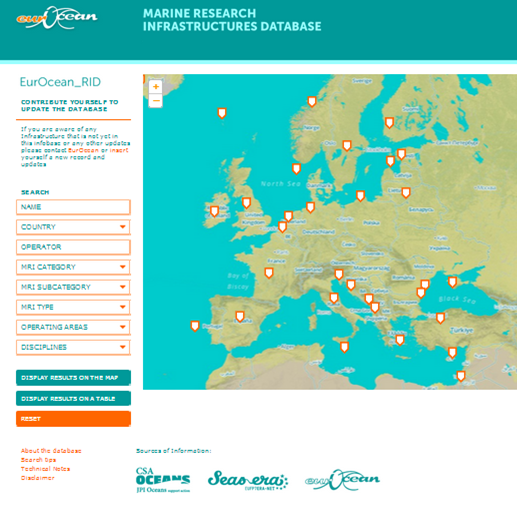 The EurOcean_RID aims at offering a comprehensive list of all existing infrastructures in Europe which are dedicated to marine sciences broad range of activities. This new database was developed by EurOcean with the support of JPI Oceans, FP7 SEAS-ERA and "CSA Oceans".